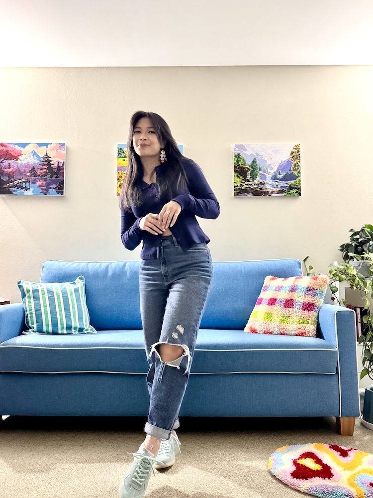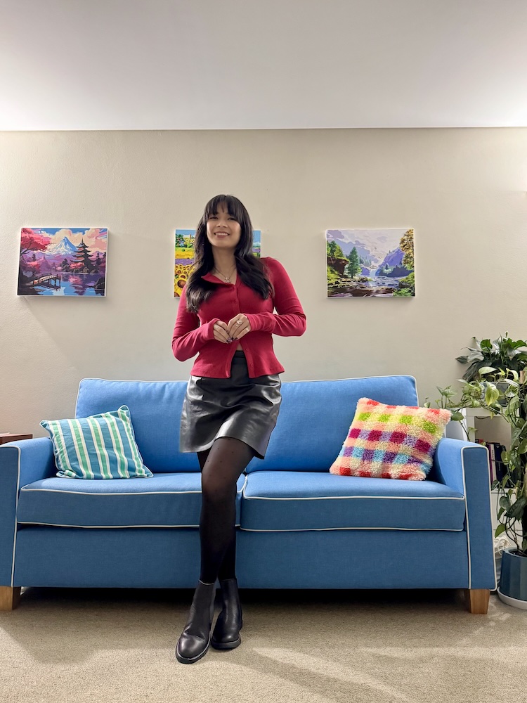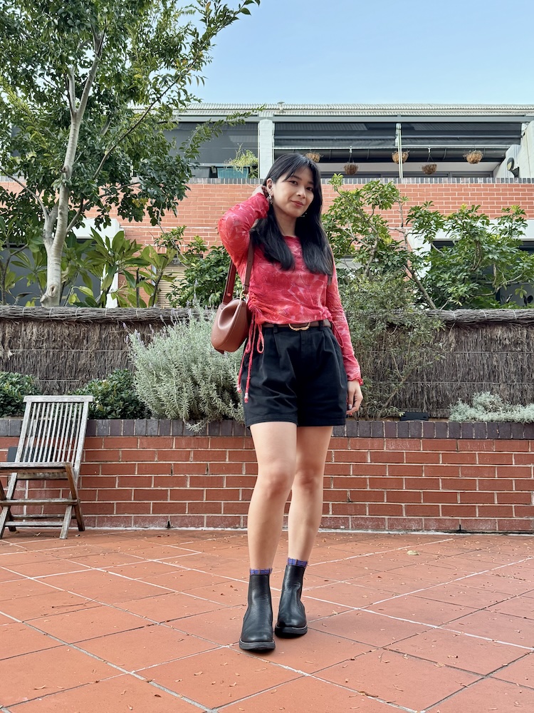 Kookai. Purchased in red first, because it’s such a bold colour... then purchased in the navy colour, which has a bit of brightness so it doesn’t look super dark.